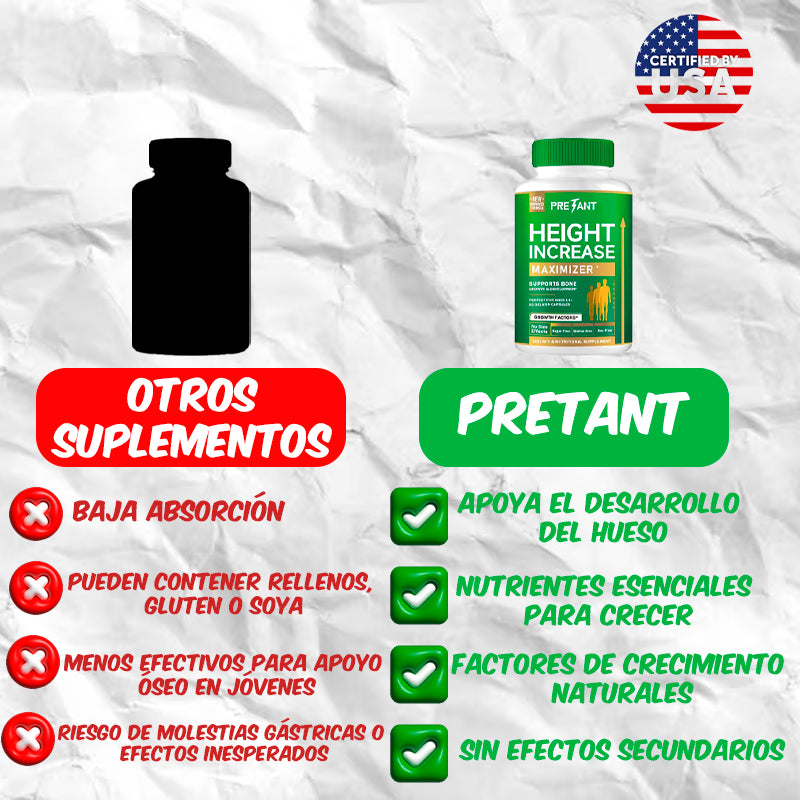 Los bajones de energía no son normales. PRETANT equilibra nutrientes clave y factores de crecimiento natural para mantenerte activo y concentrado todo el día sin estimulantes artificiales.